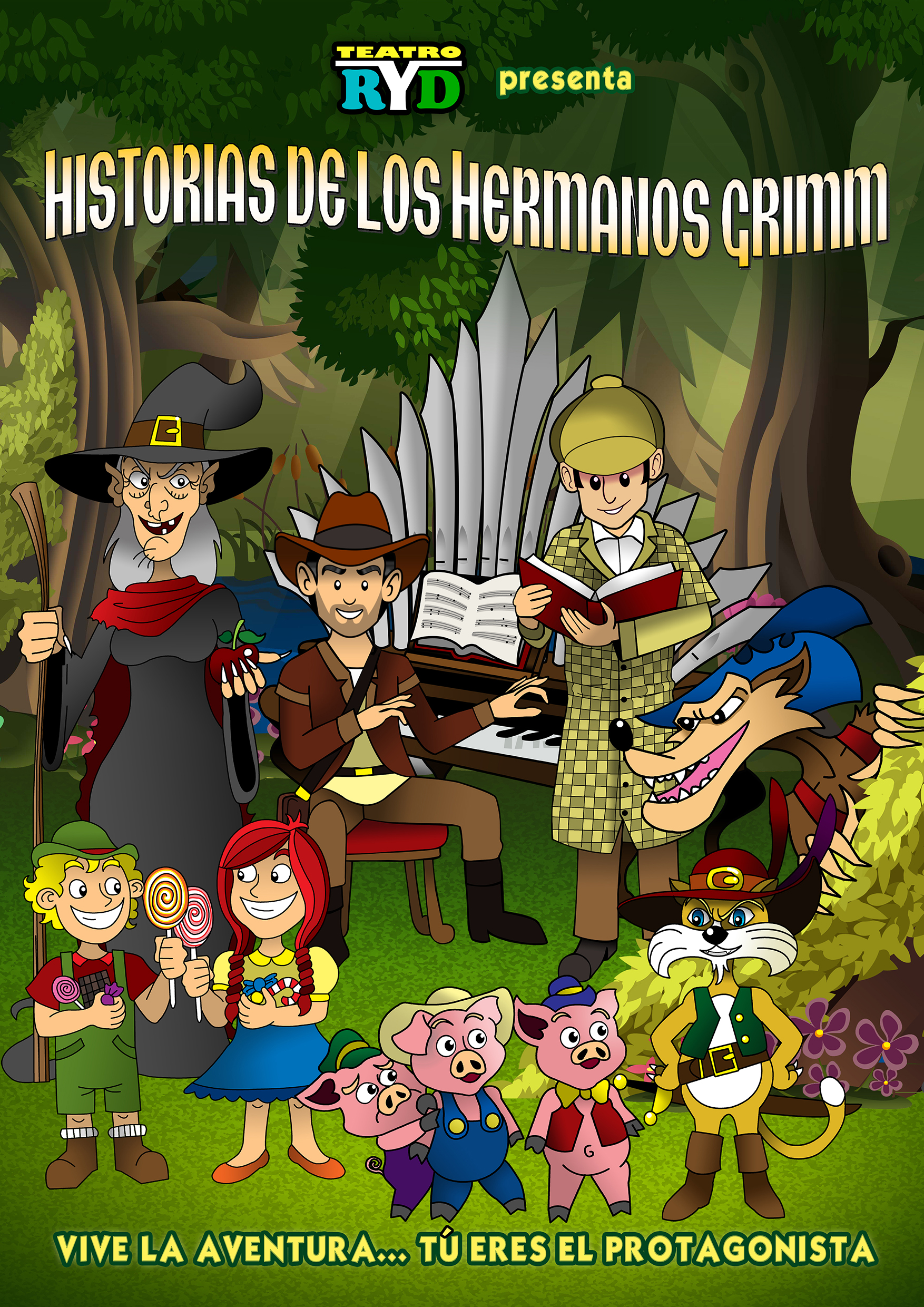 JONAS el aventurero y el detective YOU STONE van en busca del tesoro perdido de los HERMANOS GRIMM. Para ello tendrán que descifrar acertijos mágicos, resolver pruebas peligrosas y desvelar grandes enigmas, todos ellos escondidos en sus propios libros. Eso si, con la ayuda del publico asistente, que vivirá los cuentos en primera persona, visitando castillos, casitas de chocolate y bosques encantados.